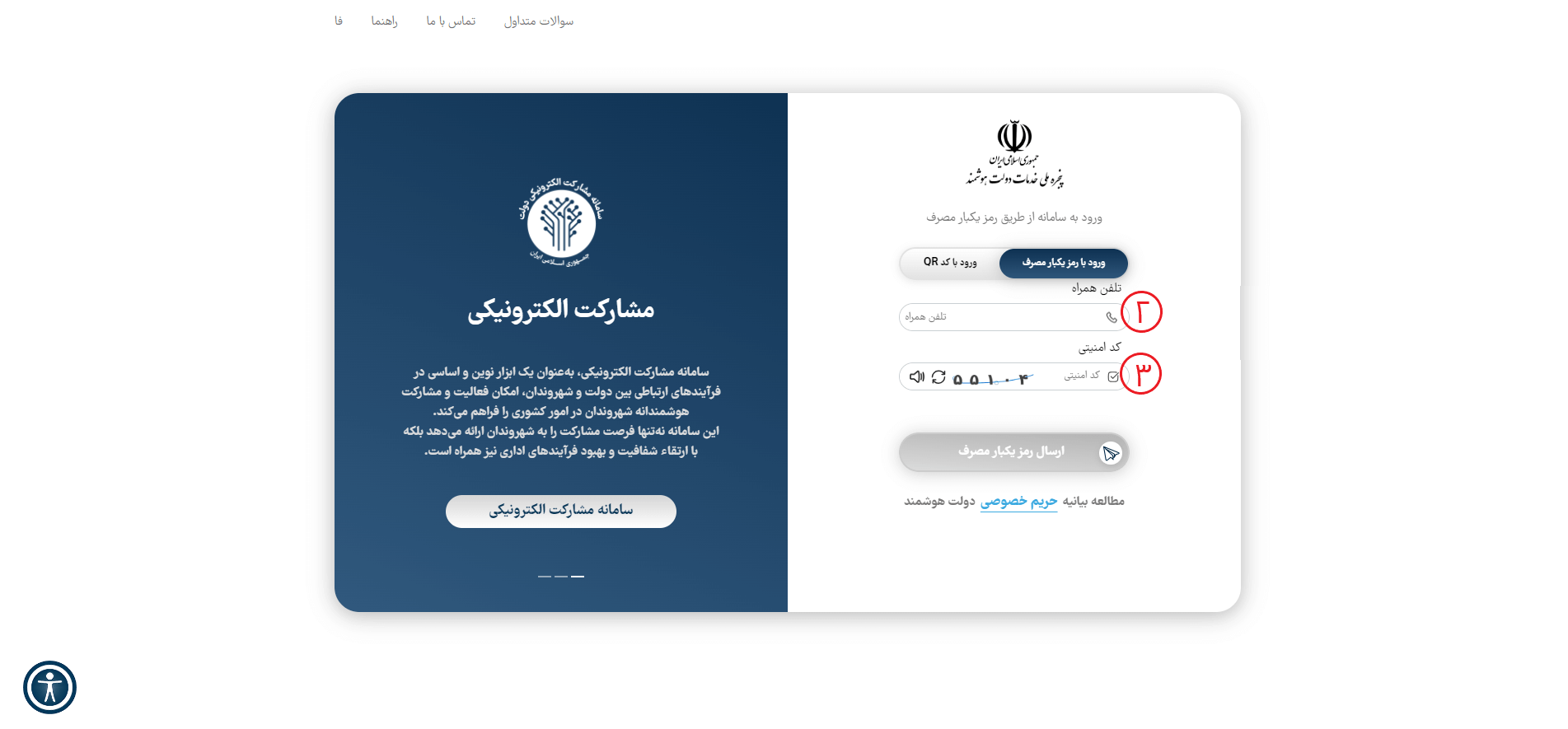 3- بعد از وارد کردن کد ملی (حقیقی) و یا شماره شناسه (حقوقی ) یک کد یکبارمصرف به شماره همراه شما ارسال میشود و آن را مطابق عکس زیر وارد نمایید.