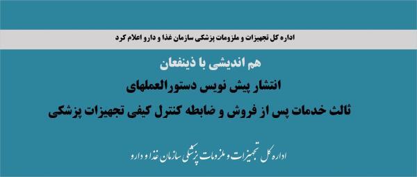 پیشنویس بازنگری دستورالعمل های ثالث خدمات پس از فروش و ضابطه کنترل کیفی تجهیزات پزشکی برای اظهار نظر ذینفعان توسط اداره نظارت بر نگهداشت منتشر شد. ۱۸ تیر ۰۴