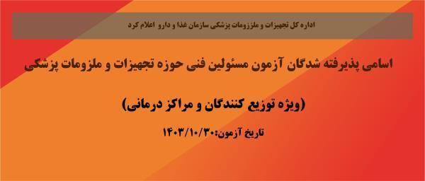 طی اطلاعیه ای اسامی پذیرفته شدگان آزمون مسئولین فنی تاریخ 1404/05/06( ویژه توزیع کنندگان و مراکز درمانی) را اعلام کرد ۲۵ مرداد ۰۴