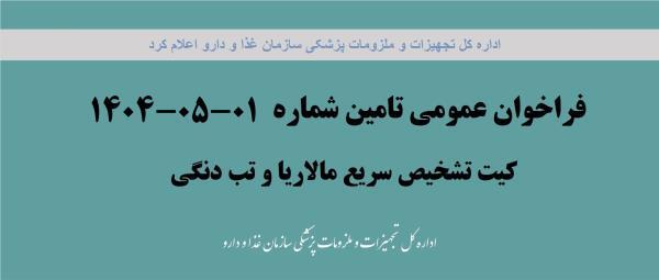 فراخوان عمومی تامین شماره 01-05-1404، تامین کیت تشخیص سریع مالاریا و کیت تشخیص سریع تب دنگی ۱۳ مرداد ۰۴